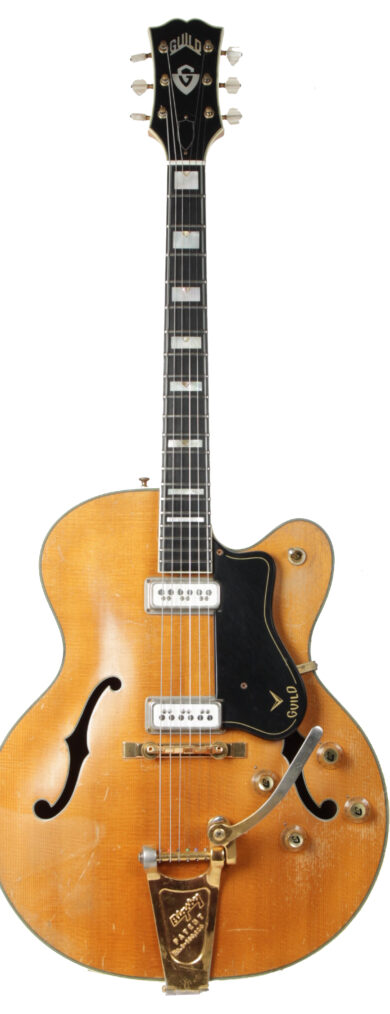 Hier haben wir eine 1960’s Italien gemacht Eko E-Gitarre Modell 500 V4 in einem atemberaubenden Hazle Finish. Diese sind ziemlich selten und fast nie auftauchen. Insgesamt ist dies eine in ausgezeichneter Form und spielt großartig. Der Hals ist gerade und die ersten Bünde haben leichte Gebrauchsspuren. Die gesamte Elektronik ist in einem soliden Zustand. 4 Single Coil Pickups, 1 Lautstärke- und 1 Tonregler. Wir haben ein professionelles Setup mit EXL110 gemacht.