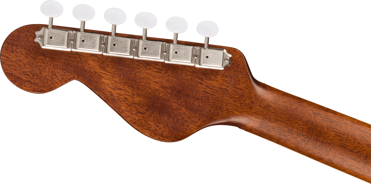 Sehr ergonomisches “Modern V”-Halsprofil mit nach hinten geneigter Kopfplatte und sechs aneinandergereihten Mechaniken.