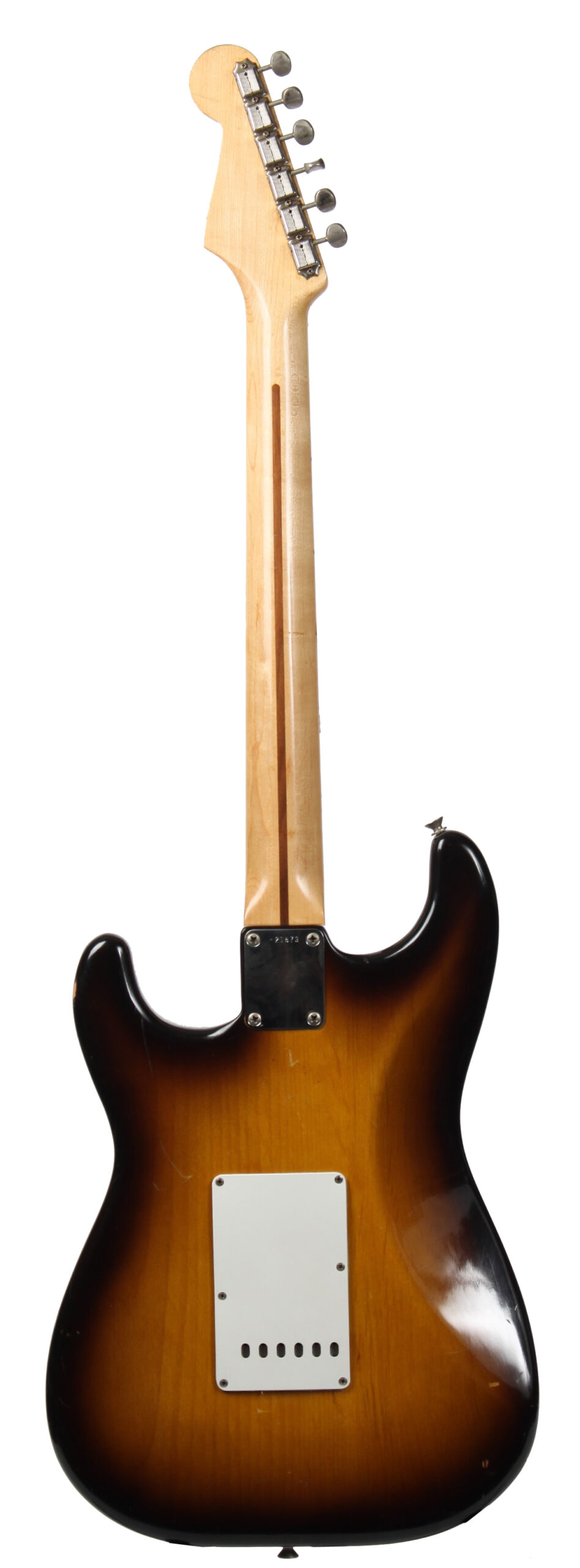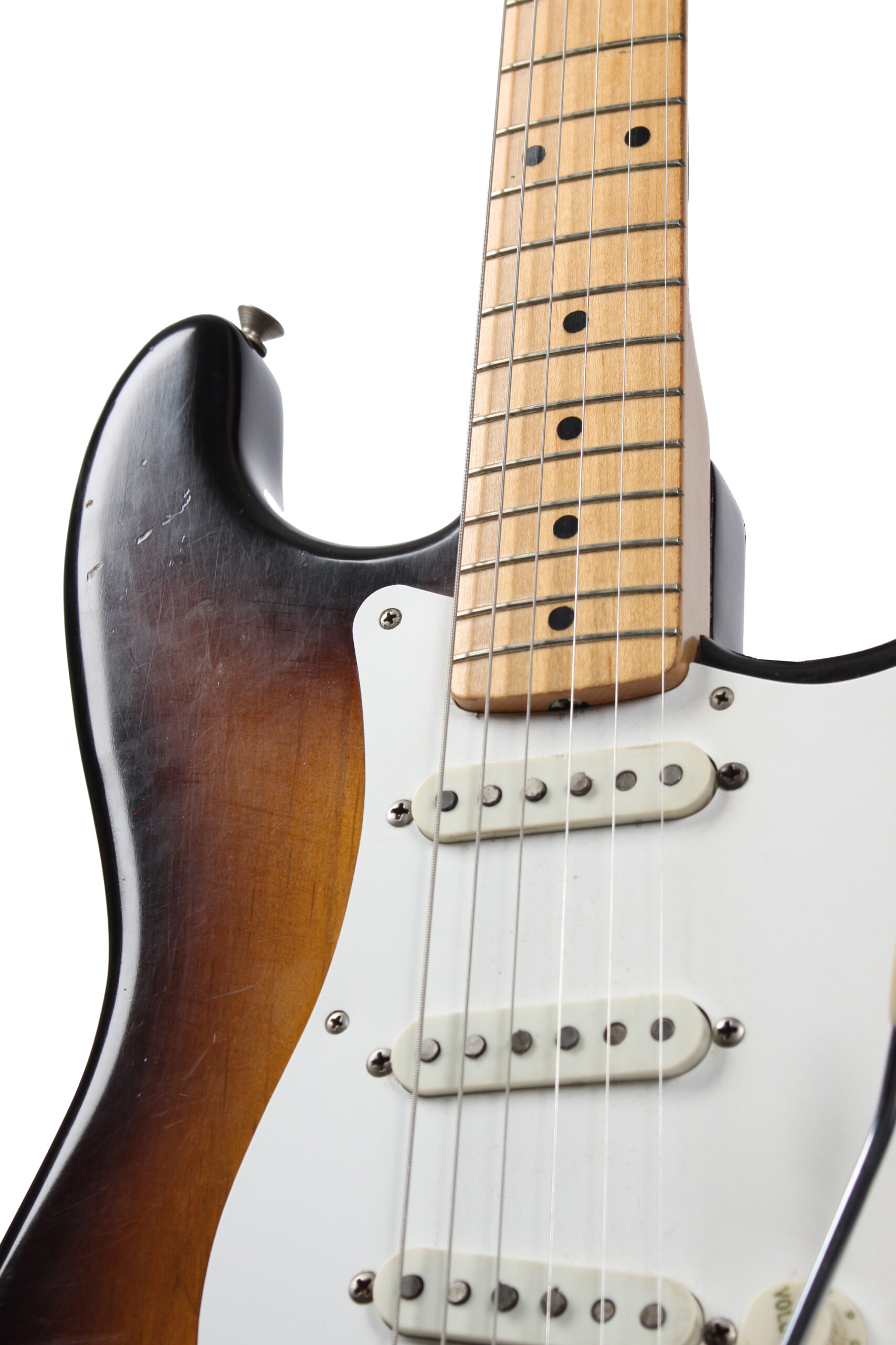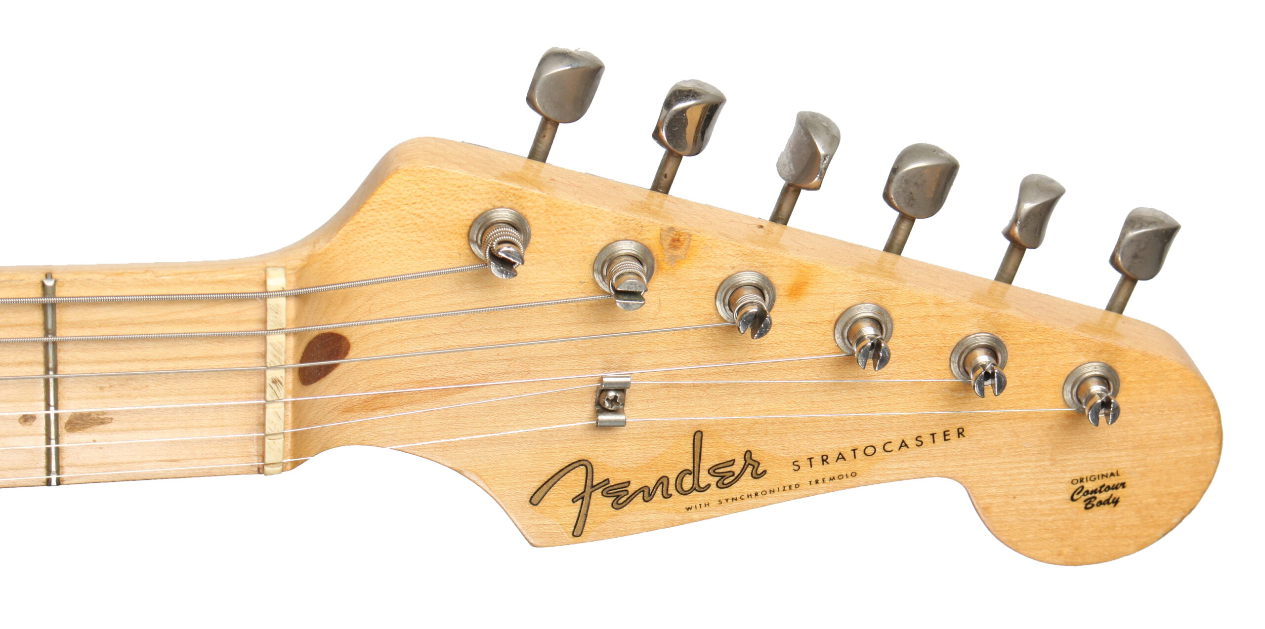 | Tremolo: | Fender “synchronized” tremolo with 6x “Pat.nr.stamped” steelsaddles |